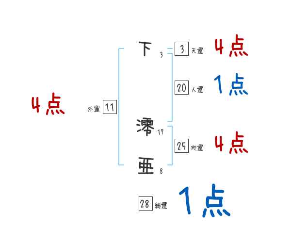 下澪亜さんの画数の鑑定結果