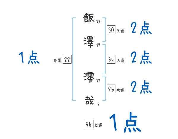 飯澤澪哉さんの画数の鑑定結果