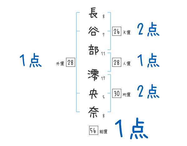 長谷部澪央奈さんの画数の鑑定結果