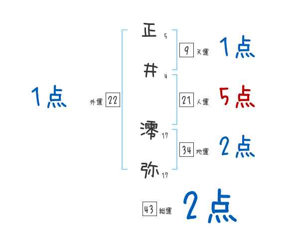 人運![]() | 正井澪弥さんの人運は21画の5つ星!統率力がある。独立し成功する。名誉を手に入れる。 性格や才能などを表す2番目に重要な運勢です。人間関係や協調性、社会的な成功に影響します。主に20歳から50歳ぐらいまでの中年期の運勢を表します。 |