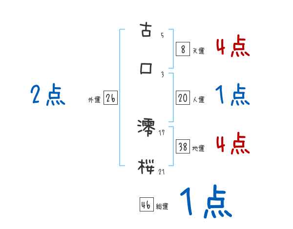 天運![]() | 古口澪桜さんの天運は8画の4つ星!勤勉家。根気強く努力し成功する。忍耐力がある。 家系が持つ宿命的な運勢を表します。祖先から受け継いだ苗字ですので自分の力が及びません。家柄を象徴します。 |