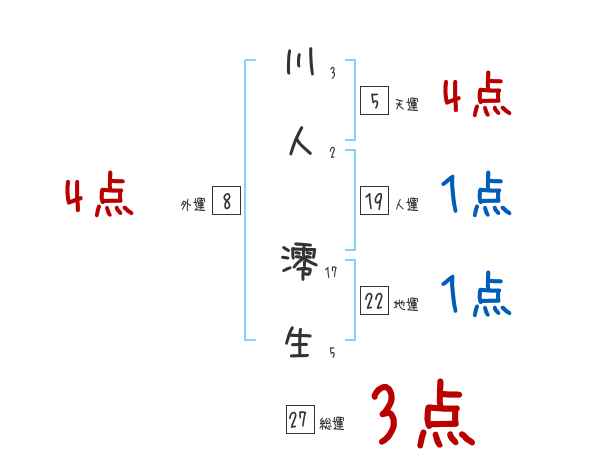 天運![]() | 川人澪生さんの天運は5画の4つ星!健康で安泰。協調性に優れ、財産に恵まれる。 家系が持つ宿命的な運勢を表します。祖先から受け継いだ苗字ですので自分の力が及びません。家柄を象徴します。 |