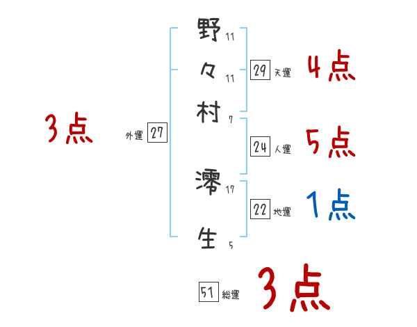 総運![]() | 野々村澪生さんの総運は51画の3つ星!変化が激しく、危険に注意。堅実な性格。 あなたの人生を表す1番重要な運勢です。生涯を通じて影響する総合運となり、主に50歳以降の晩年期に影響を及ぼします。 |