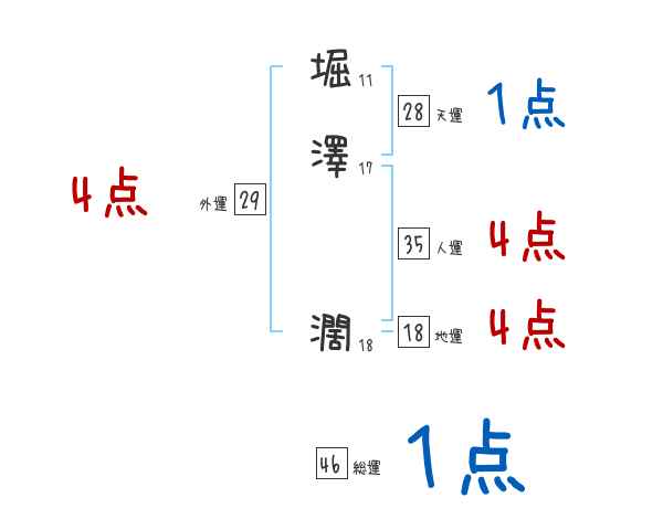 人運![]() | 堀澤濶さんの人運は35画の4つ星!温厚な性格で感受性が高い。穏和な性格で人望が厚い。 性格や才能などを表す2番目に重要な運勢です。人間関係や協調性、社会的な成功に影響します。主に20歳から50歳ぐらいまでの中年期の運勢を表します。 |