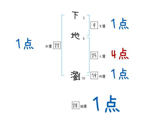 総運![]() | 下地瀏さんの総運は28画の1つ星!家庭環境に注意。スポーツで活躍できる能力があるかも。 あなたの人生を表す1番重要な運勢です。生涯を通じて影響する総合運となり、主に50歳以降の晩年期に影響を及ぼします。 |