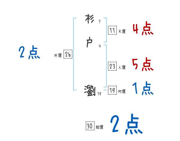 天運![]() | 杉戸瀏さんの天運は11画の4つ星!着実に富や地位を得る幸運な人生。 家系が持つ宿命的な運勢を表します。祖先から受け継いだ苗字ですので自分の力が及びません。家柄を象徴します。 |