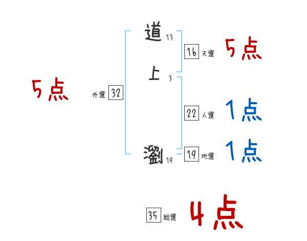 天運![]() | 道上瀏さんの天運は16画の5つ星!人望が厚く大きく発展する。逆転成功が見える。 家系が持つ宿命的な運勢を表します。祖先から受け継いだ苗字ですので自分の力が及びません。家柄を象徴します。 |