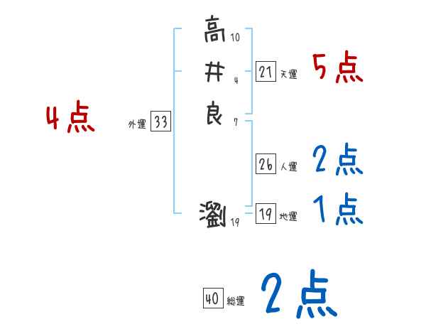 高井良瀏さんの画数の鑑定結果