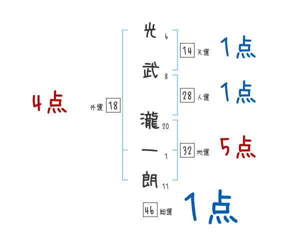 天運![]() | 光武瀧一朗さんの天運は14画の1つ星!人に対して優しいがストレスを溜め込みがち。人間関係のトラブルを避けるよう気をつけましょう。 家系が持つ宿命的な運勢を表します。祖先から受け継いだ苗字ですので自分の力が及びません。家柄を象徴します。 |