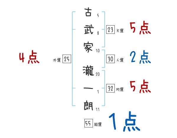 古武家瀧一朗さんの画数の鑑定結果