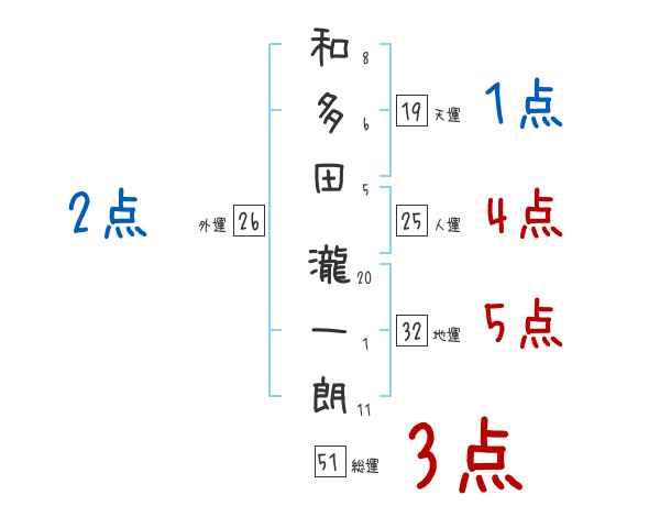 和多田瀧一朗さんの画数の鑑定結果