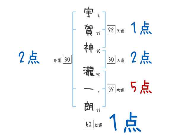 宇賀神瀧一朗さんの画数の鑑定結果