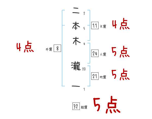 二本木瀧一さんの画数の鑑定結果