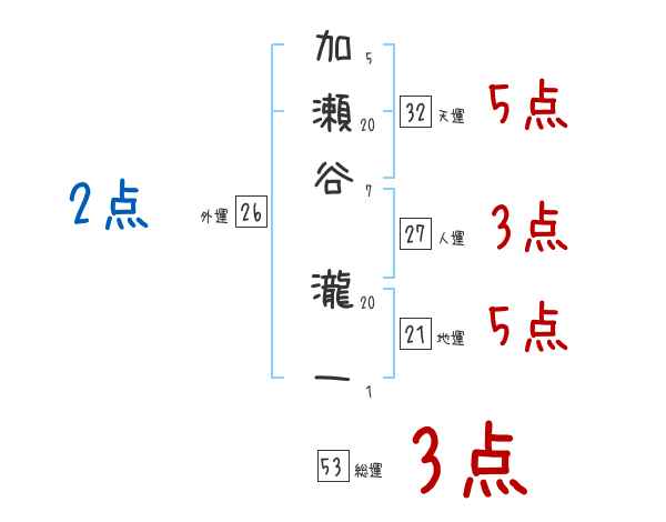 加瀬谷瀧一さんの画数の鑑定結果