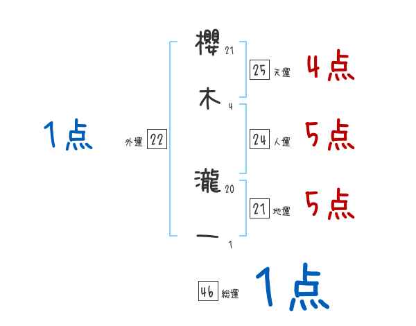 天運![]() | 櫻木瀧一さんの天運は25画の4つ星!個性があり才能があふれる。強運の持ち主で発展する。 家系が持つ宿命的な運勢を表します。祖先から受け継いだ苗字ですので自分の力が及びません。家柄を象徴します。 |