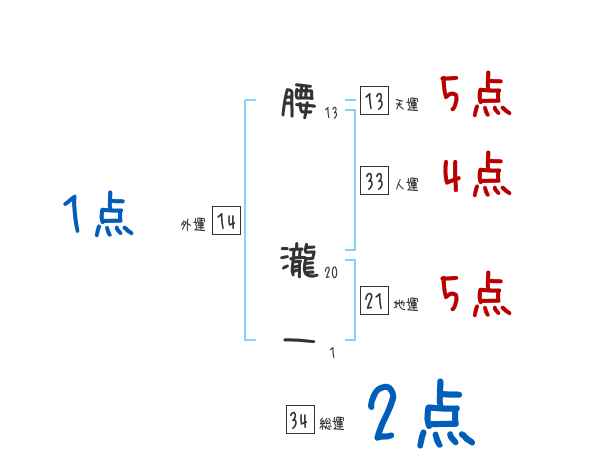 腰瀧一さんの画数の鑑定結果