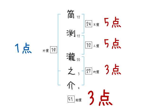 筒渕瀧之介さんの画数の鑑定結果