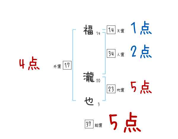 福瀧也さんの画数の鑑定結果