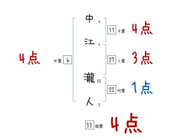 家系が持つ宿命的な運勢を表します。祖先から受け継いだ苗字ですので自分の力が及びません。家柄を象徴します。