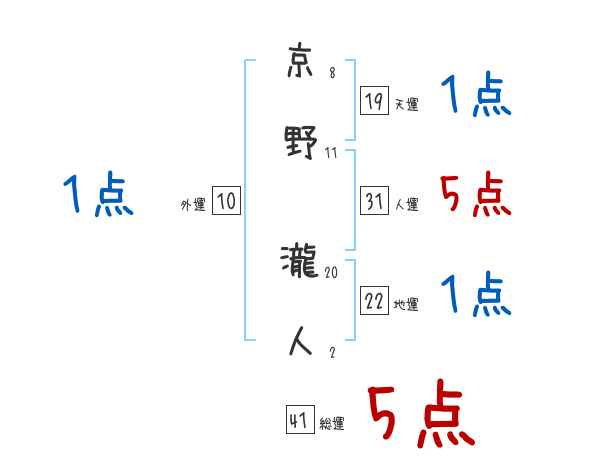 京野瀧人さんの画数の鑑定結果