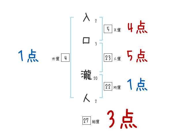 天運![]() | 入口瀧人さんの天運は5画の4つ星!健康で安泰。協調性に優れ、財産に恵まれる。 家系が持つ宿命的な運勢を表します。祖先から受け継いだ苗字ですので自分の力が及びません。家柄を象徴します。 |
