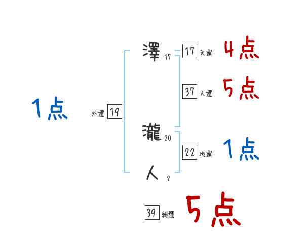 総運![]() | 澤瀧人さんの総運は39画の5つ星!社交性に優れ人望が厚い。人の上に立ち成功する。 あなたの人生を表す1番重要な運勢です。生涯を通じて影響する総合運となり、主に50歳以降の晩年期に影響を及ぼします。 |