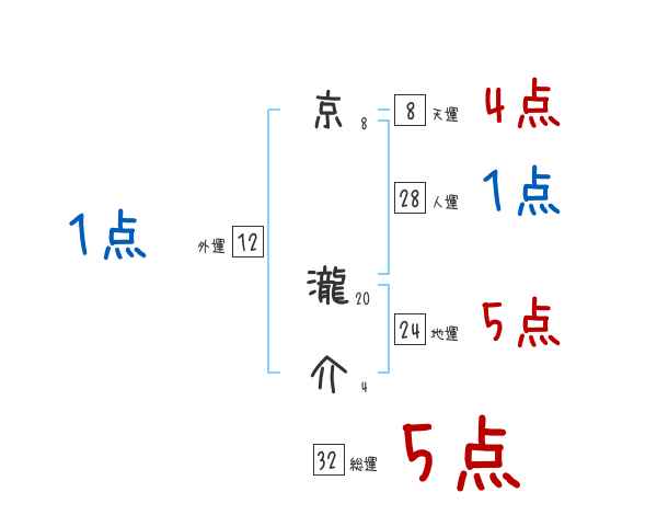 京瀧介さんの画数の鑑定結果