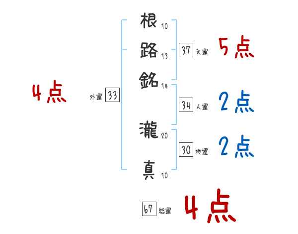 根路銘瀧真さんの画数の鑑定結果