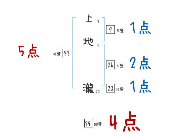 総運![]() | 上地瀧さんの総運は29画の4つ星!完全主義で才能がある。厳格な心の持ち主。 あなたの人生を表す1番重要な運勢です。生涯を通じて影響する総合運となり、主に50歳以降の晩年期に影響を及ぼします。 |