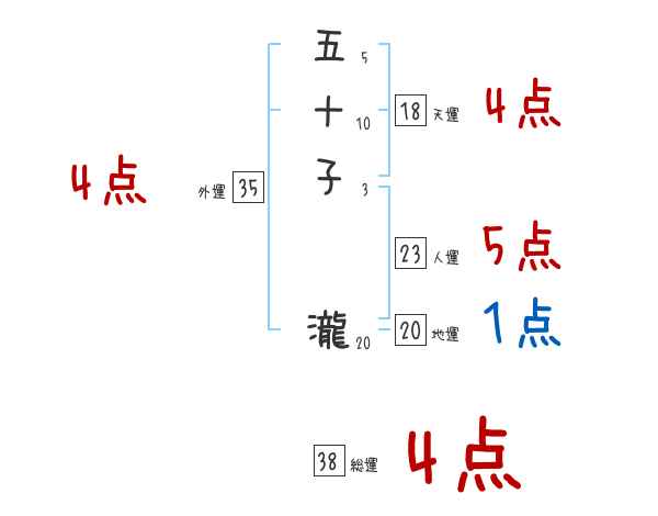 五十子瀧さんの画数の鑑定結果
