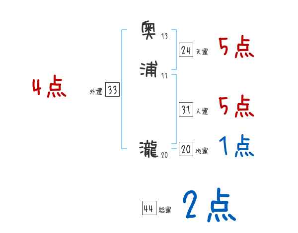 奥浦瀧さんの画数の鑑定結果