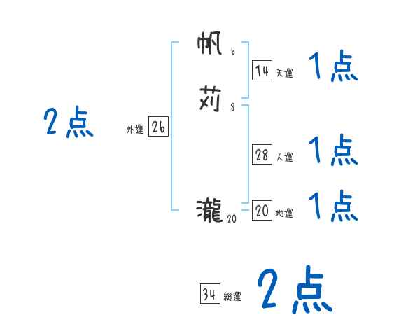 帆苅瀧さんの画数の鑑定結果