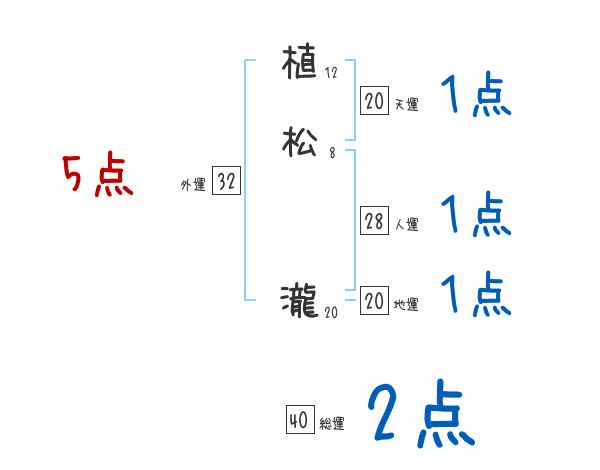 外運![]() | 植松瀧さんの外運は32画の5つ星!柔軟性があり成功する。チャンスが多く金運が良い。 生活面を象徴する運勢です。外部から受ける影響力を表し、結婚運、家庭運や職場、環境への順応性を表します。 |