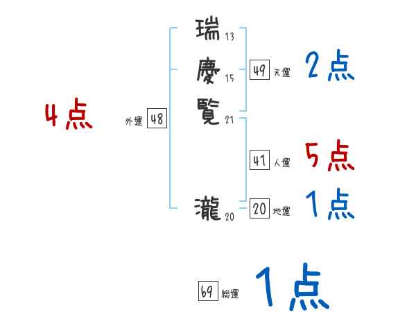 瑞慶覧瀧さんの画数の鑑定結果