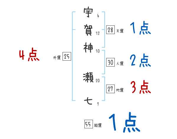 宇賀神瀬七さんの画数の鑑定結果