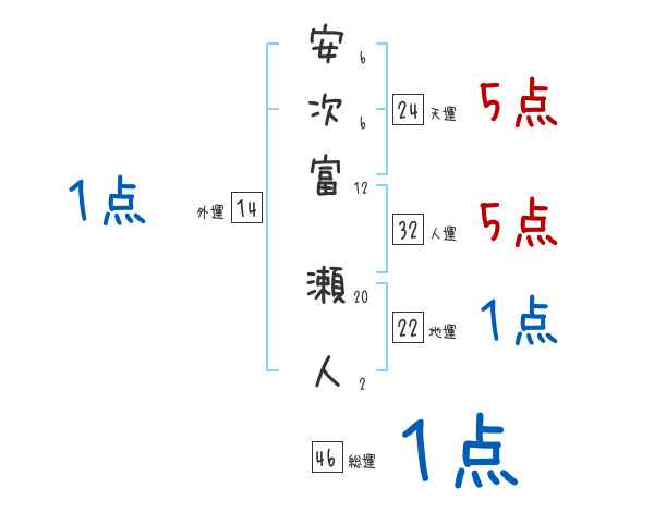 安次富瀬人さんの画数の鑑定結果