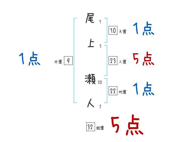 尾上瀬人さんの画数の鑑定結果