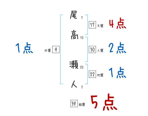 尾高瀬人さんの画数の鑑定結果