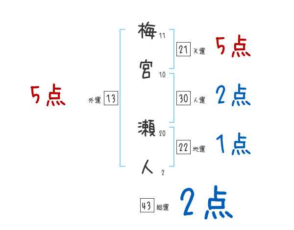 梅宮瀬人さんの画数の鑑定結果