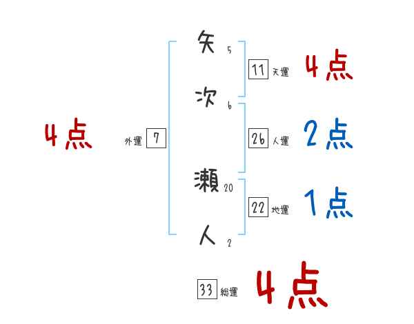 矢次瀬人さんの画数の鑑定結果