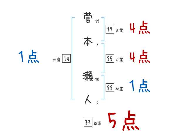 菅本瀬人さんの画数の鑑定結果