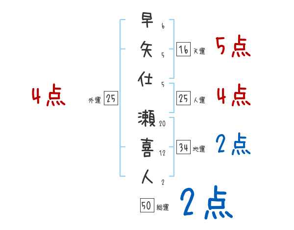 早矢仕瀬喜人さんの画数の鑑定結果