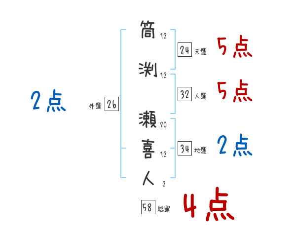家系が持つ宿命的な運勢を表します。祖先から受け継いだ苗字ですので自分の力が及びません。家柄を象徴します。