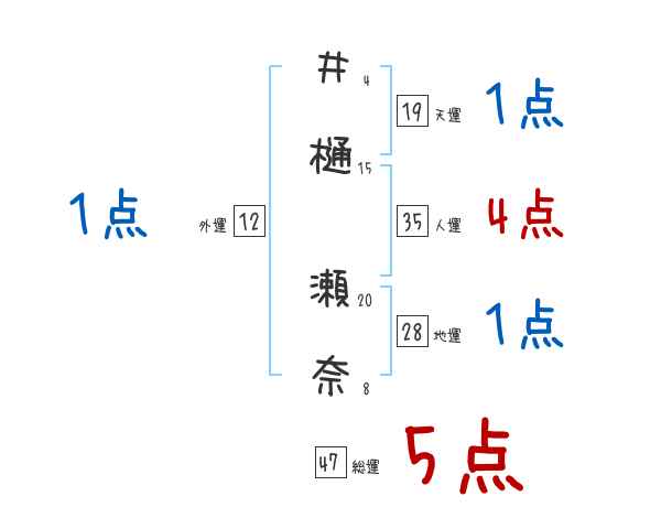 井樋瀬奈さんの画数の鑑定結果