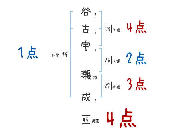 谷古宇瀬成さんの画数の鑑定結果