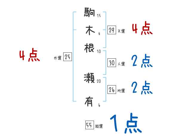 駒木根瀬有さんの画数の鑑定結果