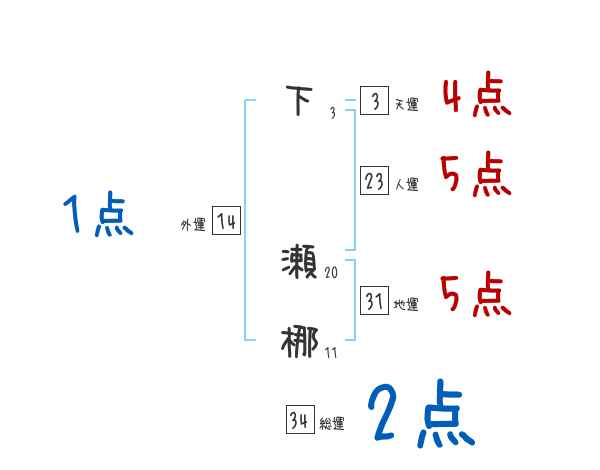 下瀬梛さんの画数の鑑定結果