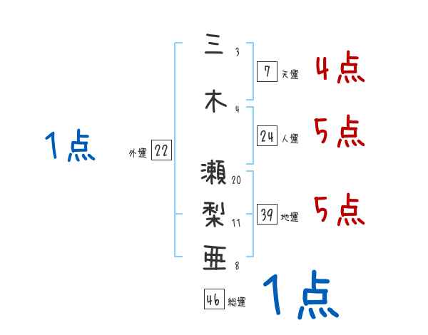 三木瀬梨亜さんの画数の鑑定結果