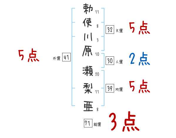 勅使川原瀬梨亜さんの画数の鑑定結果