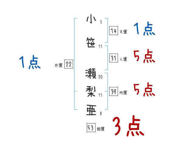 小笹瀬梨亜さんの画数の鑑定結果